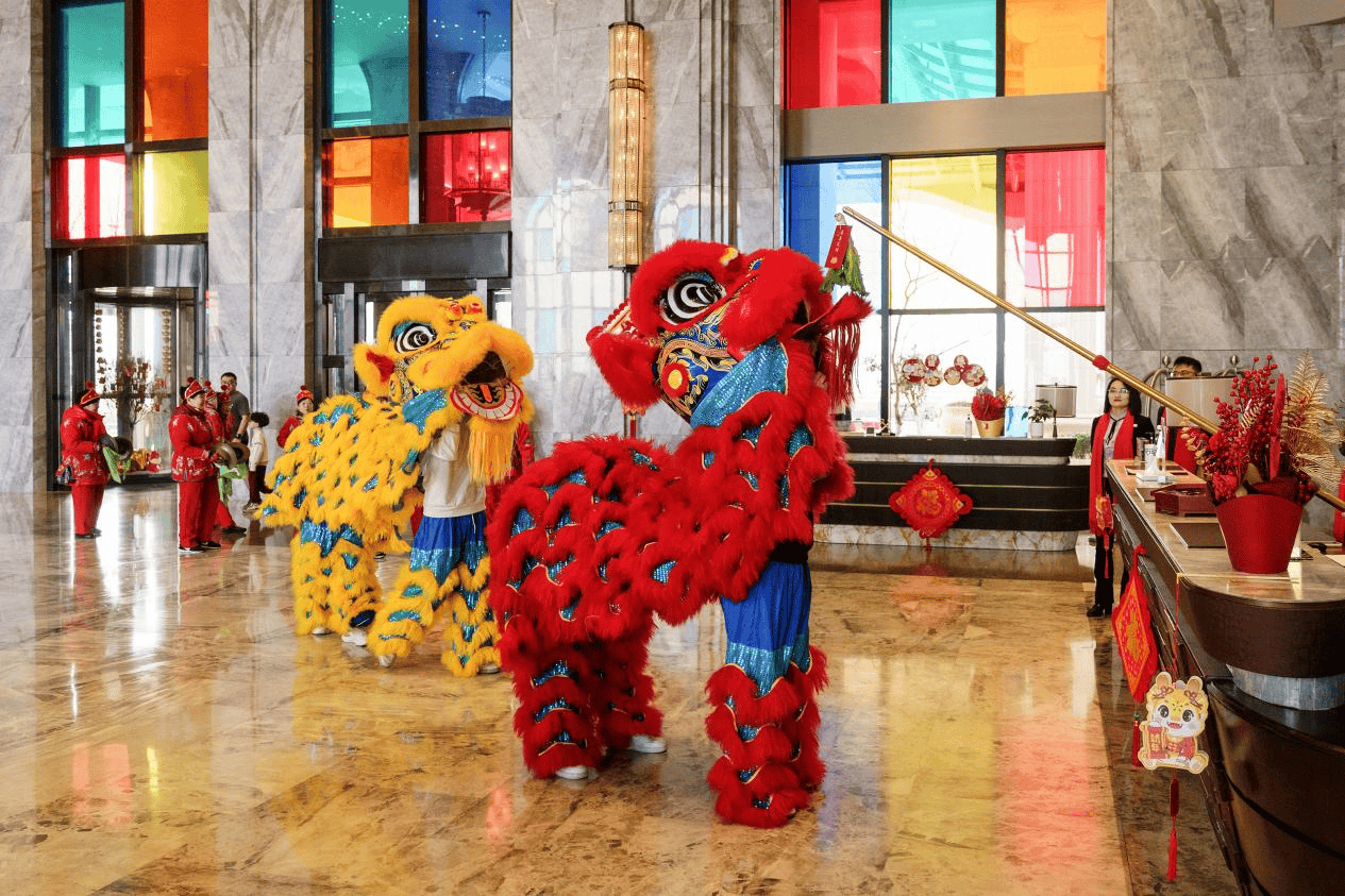 图:青岛融创施柏阁酒店准备了舞狮表演