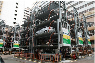 深圳中航城项目采用高6层的垂直循环立体车库,共建造14座,项目建成后,原本只能停放30辆左右的场地可供140余辆车同时停放。致电车库厂家深圳市伟创自动化设备有限公司了解到,目前垂直循环车库在医院、市政办公及商业中心应用得相当广泛,主要原因在于此类车库进出口众多,每组车位一个进出口,一般集中上下班的场所采用这样的车库不易堵车,存取一辆车仅需1分钟左右,快速,而且只有纵向运动,车库使用起来更加平稳高效。目前,该车库类型国内最高能做到11层,2车位空间可以停20辆车。