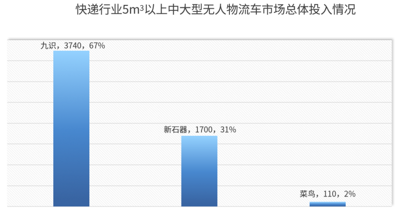 中国邮政无人车总量暂未公开,据行业人士透露,其采购的车型以不小于5m³的中、大型无人物流车为主,大多来自九识智能。