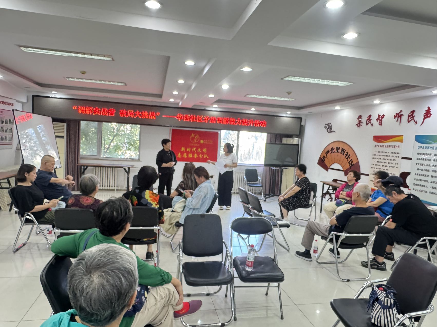 “以前总觉得调解是‘各打五十大板’,今天扮演刘奶奶才明白,独居老人对安静的需求有多迫切!” 刚结束角色模拟的社区党员小张擦着额头的汗,语气里满是感慨。9 月 18 日下午,华严北里西社区活动室里热闹非凡,“调解实战营,破局大挑战” 矛盾调解能力提升活动在此开展。社区志愿者通过剧本杀式模拟、角色互换演绎等创新形式,在 “沉浸式体验” 中解锁调解新技能,让柔性治理的种子在邻里间悄然扎根。