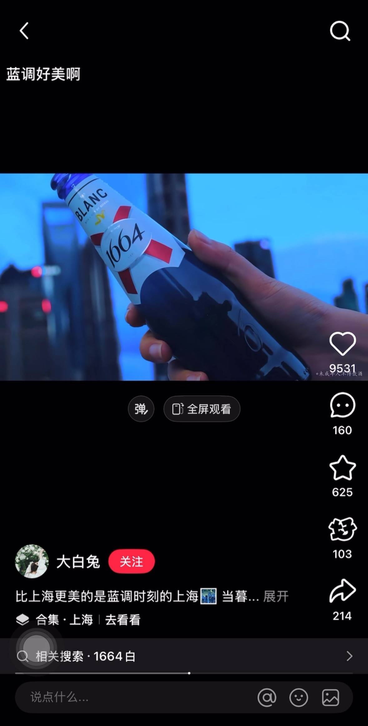 在此话题热度下,许多粉丝用户群体自发发布以“蓝调时刻”为灵感的内容作品,这些鲜活的分享,将1664自然地融入消费者真实生活场景中,在更广阔的范围内传递了“和1664一起奔赴蓝调时刻”的信息,助力本次传播进一步出圈。