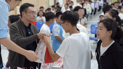 讲座结束后,暖洋葱家庭教育还未为每位同学准备了一份特别的“学习成长文具礼包”。邀请中科院高级心理咨询师,暖洋葱心理研究院院长赵士杰老师,对全体学生进行发放,礼包被快速、有序地分发到每一位同学手中。这份实用的礼物承载着学校对学子们的美好祝愿。