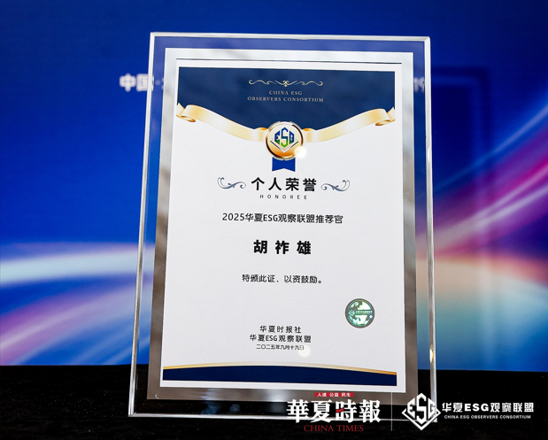 据介绍,“2025华夏ESG观察联盟推荐官”主要是为了表彰对中国企业ESG生态发展的推动作用的个人。