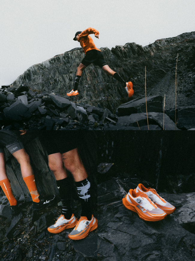 阳光点亮白昼,月光辉映长夜,始终以光芒指引方向,寻未见之境。设计师以此为启发,将实用性与宇宙灵感融合,呈现炫目工艺如繁星闪耀,质感面料似行星表面,以灵活设计自如应对昼夜交替,将光在山野中交替辉映的鎏橘、钛银、暗黑为色彩方案,捕捉越野跑全程的时空,呈上全新LI-NING x NīNEpointNīNE联名越野跑ADV系列,涵盖竞速越野跑鞋、长距离保护越野跑鞋、冲锋衣、风壳外套、速干T恤、越野短裤、越野帽、越野袜等全方位产品。