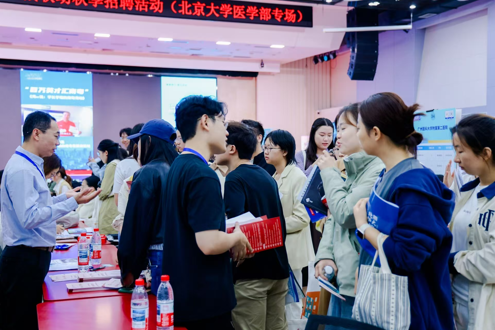 本次活动充分发挥精准引才策略,通过打通北京大学医学部渠道、覆盖学生社群场景、定向邀约毕业生群体等举措,共吸引了超过400名学生到场参与。同时,活动现场还开展了“百校聚南粤”邀约对接工作,邀请北京大学医学部及北京地区相关高校参加在深圳举办的“百万英才汇南粤”2025年秋季大型综合招聘会,进一步扩大引才范围,深化校企合作。