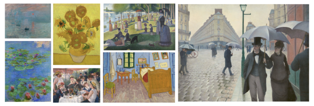 莫奈《印象・日出》《睡莲》系列、梵高《向日葵》《阿尔勒的卧室》、雷诺阿《船上的午宴》、修拉《大碗岛的星期天下午-1884》、卡耶博特《巴黎街景:雨天》等经典之作皆在展出之列,系统梳理了印象派从萌芽到成熟的美学历程。
