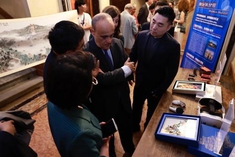 同日,“很古朴也很时尚”交流晚宴及系列展示活动在米兰维尼亚勒大宅举办,中外政商界、文艺界代表齐聚一堂气氛热烈。来自北京海淀三山五园艺术中心的“数字文物”MR体验成为焦点。与会的意大利前文化部长Alberto Bonisoli在体验后赞叹:“我仿佛穿越时空,看到了马可·波罗曾见过的景象。科技不仅未削弱文化,反而让它更生动、更可触。”