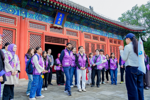 为了让留学生们深度体验通州古今交融的独特魅力,主办方精心设计了融合历史、艺术、生态、非遗的多元课程线路,为留学生们开启了一场充满了互动与发现的通州之旅。在大运河文化旅游景区(北区),留学生们不仅为古老的建筑格局所震撼,更对儒、释、道三教和谐共存的智慧产生浓厚兴趣。