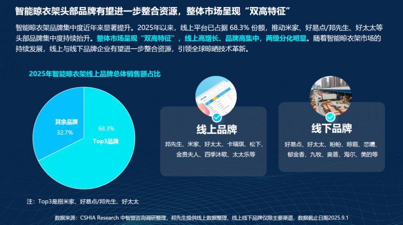 在明星体验和福利惊喜的背后,是智能晾衣架行业正在经历的深刻变革。据最新《2025中国智能晾晒产业发展白皮书》显示,当前智能晾衣架市场已形成 “线上高增长、品牌高集中” 的双高特征。