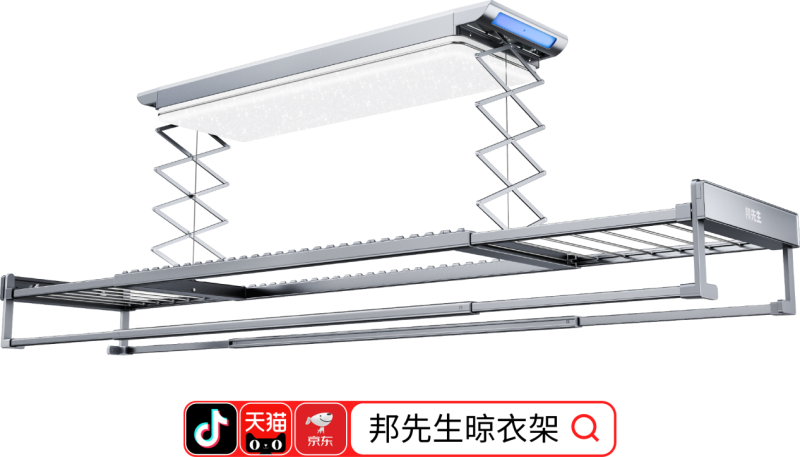 “邦先生晾衣架M66Pro,一体全隐设计,外观极简优雅,收起来还没有手掌宽。打开是晾衣架,合上就是吸顶灯,真正实现解放阳台空间。”聂远分享了他的使用体验。