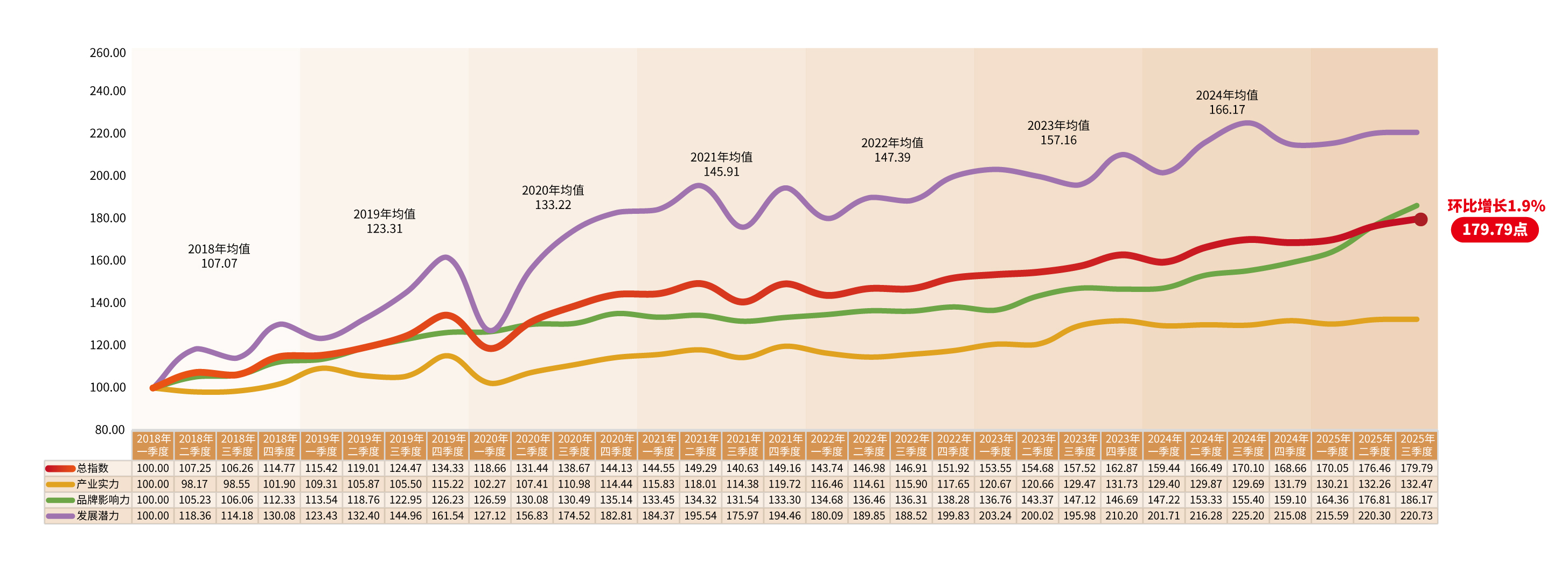 报告显示,2025年三季度仙作发展潜力指数报220.73点,环比增长0.2%,同比降低2%。自2018年一季度基期起,发展潜力指数虽然有小幅波动,但总体呈现上升态势。在“互联网+”背景下,仙游相关部门积极推动“仙作”拥抱平台经济,通过互联网、大数据、云计算技术与传统工艺美术的深度融合,有效带动产业迭代升级与提质增效。
