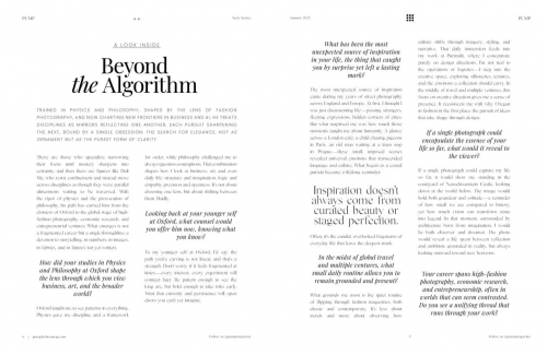 近日,国际时尚杂志《PUMP》推出特别专题「风格语法(The Grammar of Style)」,对Purmulti联合创始人兼创意总监马达理进行了深度专访。作为一位拥有物理与哲学双学位背景的创意人,马达理以独特的理性思维与艺术感知,诠释了Purmulti品牌背后的思想与美学。