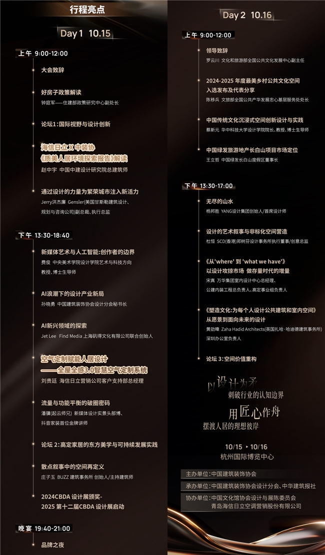 设计的突破,离不开产业生态的协同创新。从解构空间美学的边界,到激活产业创新的潜能,2025CBDA设计年度大会暨中国建筑装饰协会设计分会年会将为行业注入文化艺术的厚度与科技赋能的锐度,海信日立也将聚焦于产业热点与行业最新风向标,全面展示前沿技术与高品质产品矩阵,为家居行业加速迈进“质美人居”时代绘就高质量发展图景。