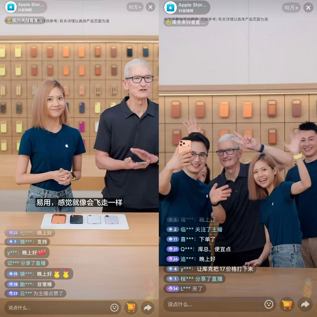 10 月 13 日晚,苹果公司 CEO 库克突然出现在 Apple Store 旗舰店抖音直播间,与中国网友打招呼,并和其他员工一起完成了他面向中国消费者的首场直播带货,“库克来抖音直播了” 迅速登上热搜榜。