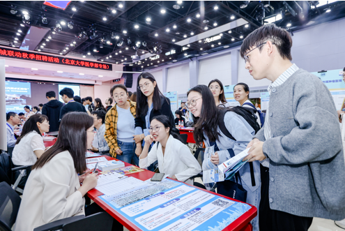 本次活动充分发挥精准引才策略,通过打通北京大学医学部渠道、覆盖学生社群场景、定向邀约毕业生群体等举措,共吸引了超过400名学生到场参与。同时,活动现场还开展了“百校聚南粤”邀约对接工作,邀请北京大学医学部及北京地区相关高校参加在深圳举办的“百万英才汇南粤”2025年秋季大型综合招聘会,进一步扩大引才范围,深化校企合作。