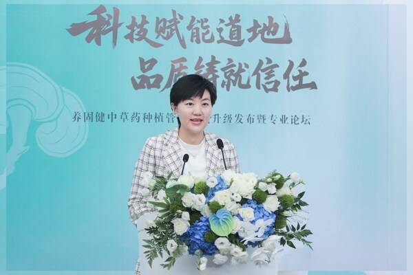 发布会伊始,无限极(中国)有限公司副总裁胡贞忠在欢迎致辞中回顾了养固健多年来在中草药种植领域的实践历程,并对到场嘉宾表示热烈欢迎。致辞中强调:"十四年来,我们始终秉持'100-1=0'的企业价值观和质量理念,从未停止对卓越品质与创新突破的追求,今天再次升级种植管理模式,通过'七统一'标准和'天眼追溯管理系统'实现全链条透明化管理,让每一份信任都能被看见、被验证。"