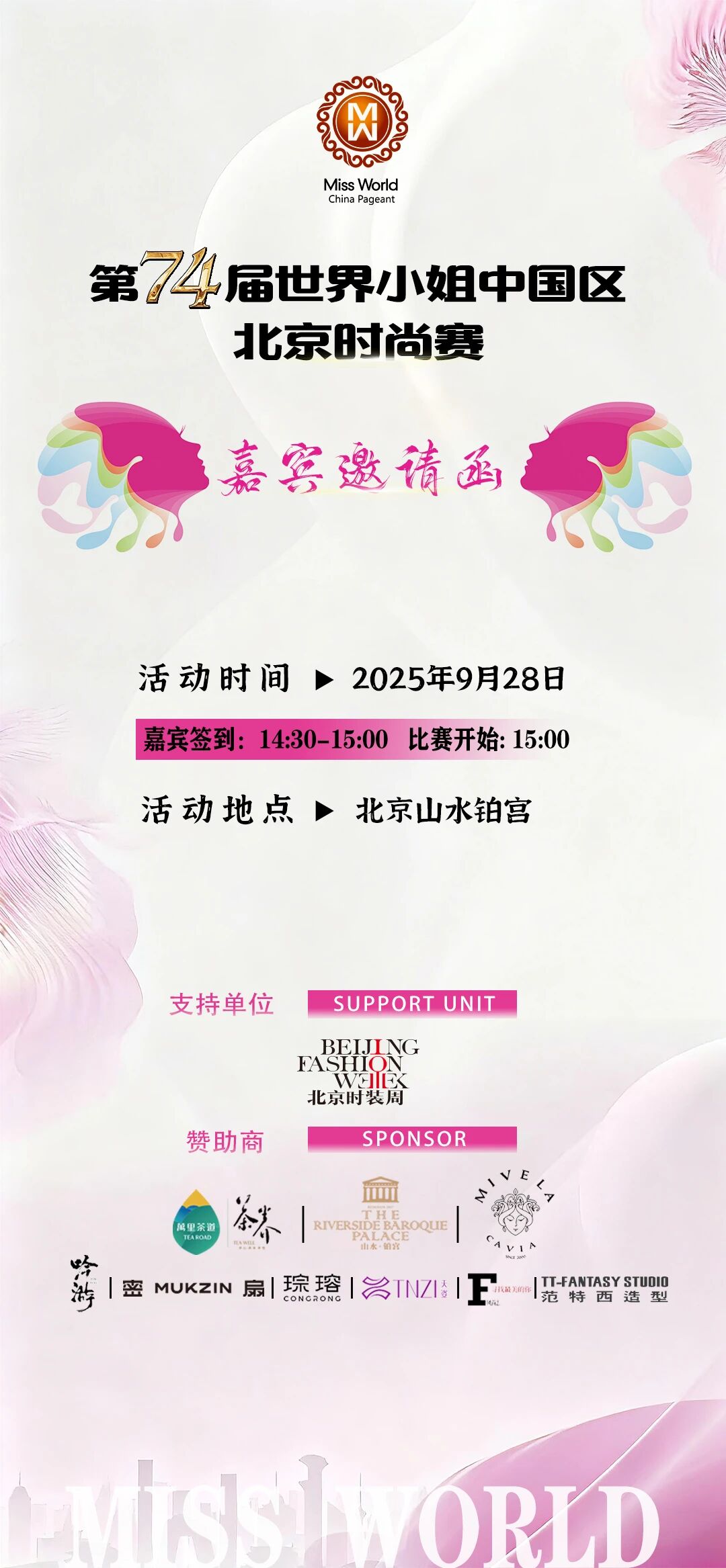 2025年9月28日下午3点,备受瞩目的第74届世界小姐中国北京赛区—时尚赛即将登场!本次赛事由新丝路(北京)模特管理有限公司与世界小姐中国北京赛区组委会主办,北京时装周有限责任公司为支持单位。