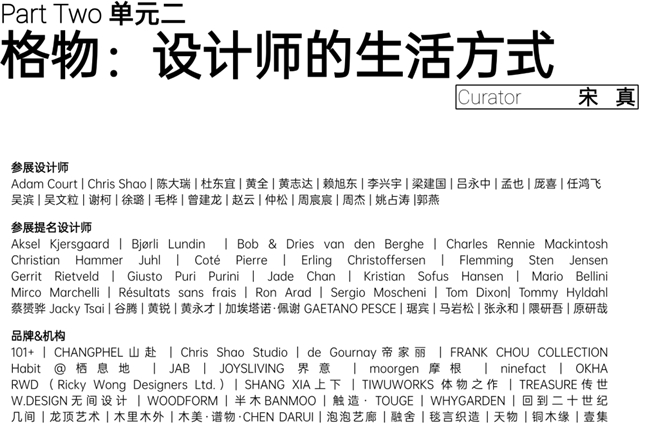 而「栖居之界」总策划、万华集团室内设计中心总经理宋真也告诉我们,自己主策的单元二,以生活方式为切口,联合62位专注于人居理想营造的设计师,以及来自12个国家和地区的39家生活方式品牌,带来149件/组参展作品共同呈现中国当代设计史的一个小小局部、撰写一部关于「如何生活」的立体诗篇,描摹当下中国最有影响力的设计师在人居生活多层次的思考。