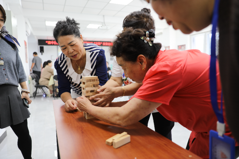 随后,京味互动游戏环节成为全场焦点。“你比划我猜”中,“北京烤鸭”“驴打滚”等经典京味美食题目接连亮相,居民们两人一组默契配合,有的手舞足蹈模仿烤鸭片皮动作,有的轻声提示特色口感,引得现场笑声不断,随后的叠叠乐、抓羊拐、打花棍、抽“汉奸”同样趣味十足,整个活动室充满了欢声笑语。大家围坐在一起,以“我们曾经”为开篇,陆续讲述老北京故事:有居民回忆起小时候围着锅等羊蝎子的场景,有居民分享学生时代的温馨往事,还有年轻的朋友分享小时候爬上树遥望故宫放烟花的幸福趣事,一句句质朴的话语,让老北京的烟火气与中秋的团圆意交融在一起,引发全场共鸣。