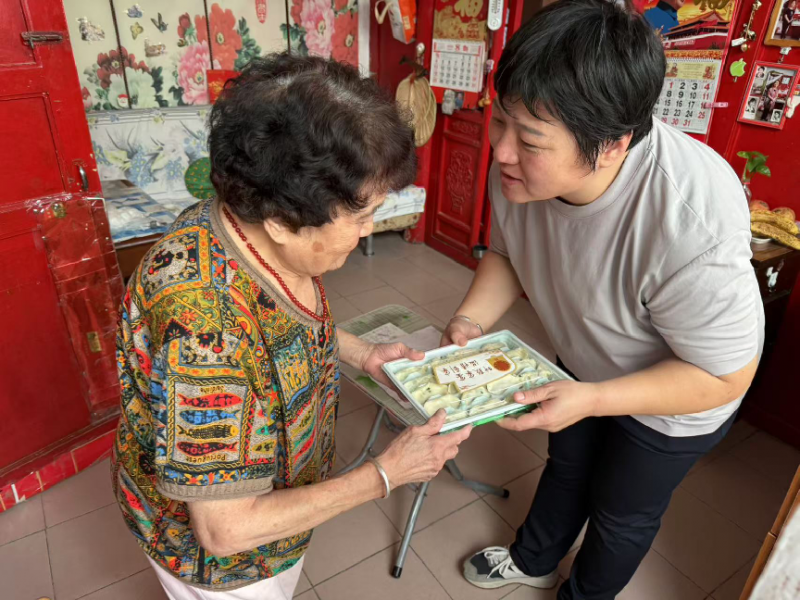 活动尾声,志炸酱分愿者们将煮好的饺子、炒好的装打包,带着中秋祝福上门送给社区高龄老人。“热乎的饺子您快尝尝,祝您中秋快乐!”一句句问候、一份份美食,让老人们感受到社区大家庭的温暖。